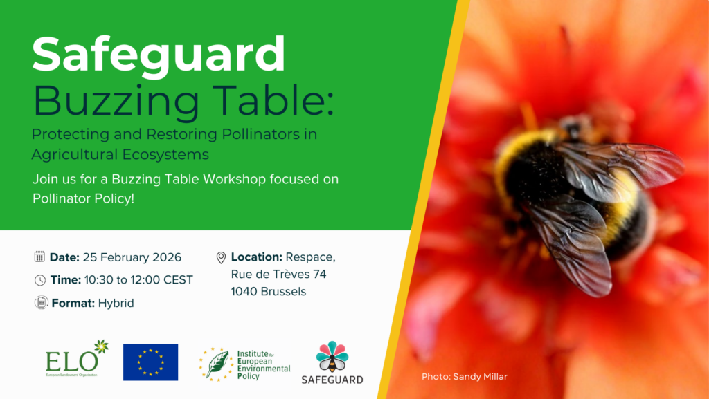 The Buzzing Table is part of the Safeguard hybrid workshop, Transforming landscapes with pollinator research: Safeguard workshop on pollinator-friendly land management, jointly organised with IEEP, which holds a session in the afternoon.