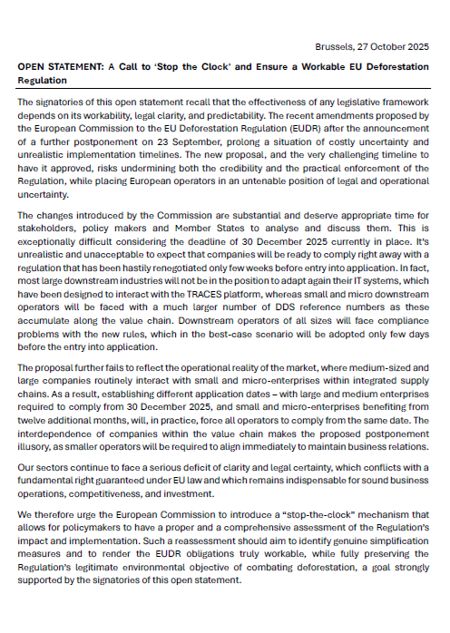 Joint call to ‘Stop the Clock’ and Ensure a Workable EU Deforestation Regulation