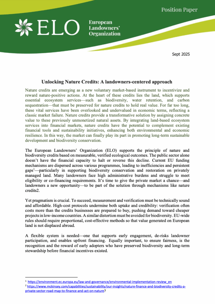 By: Delphine DUPEUX, Director of EU Biodiversity policy and Parliamentary Affairs, ELO & Dr. Jurgen TACK, ELO Secretary General