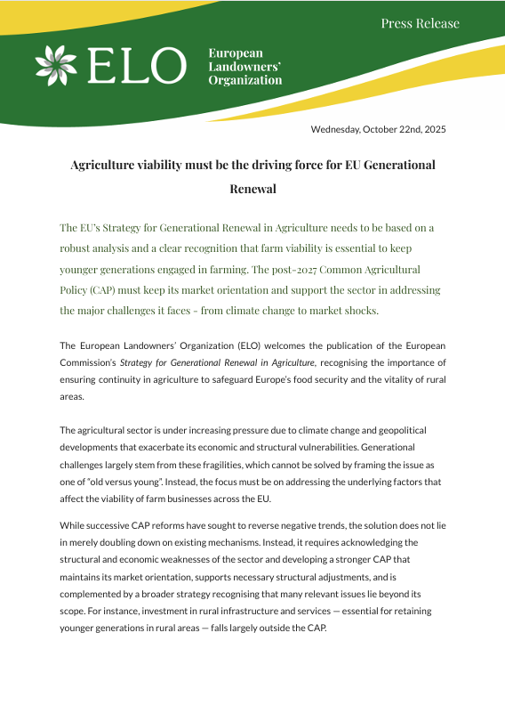 Press release - Agriculture viability must be the driving force for EU Generational Renewal