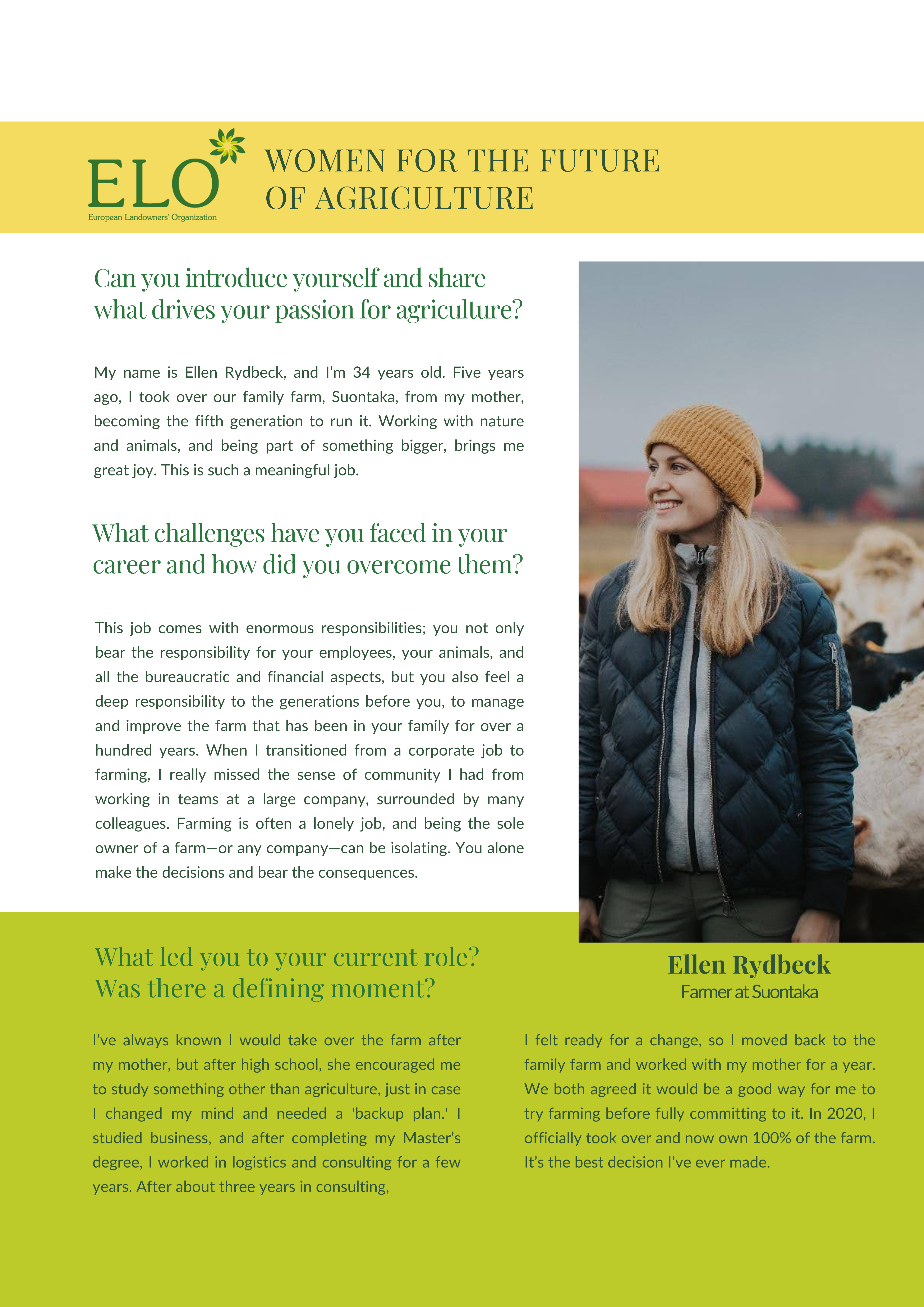 ELO would like to make a small contribution to support and amplify the voice of women in agriculture. The campaign’s main aim is to gather examples of leading women in the areas of sustainable agriculture and local initiatives to build resilient food systems.